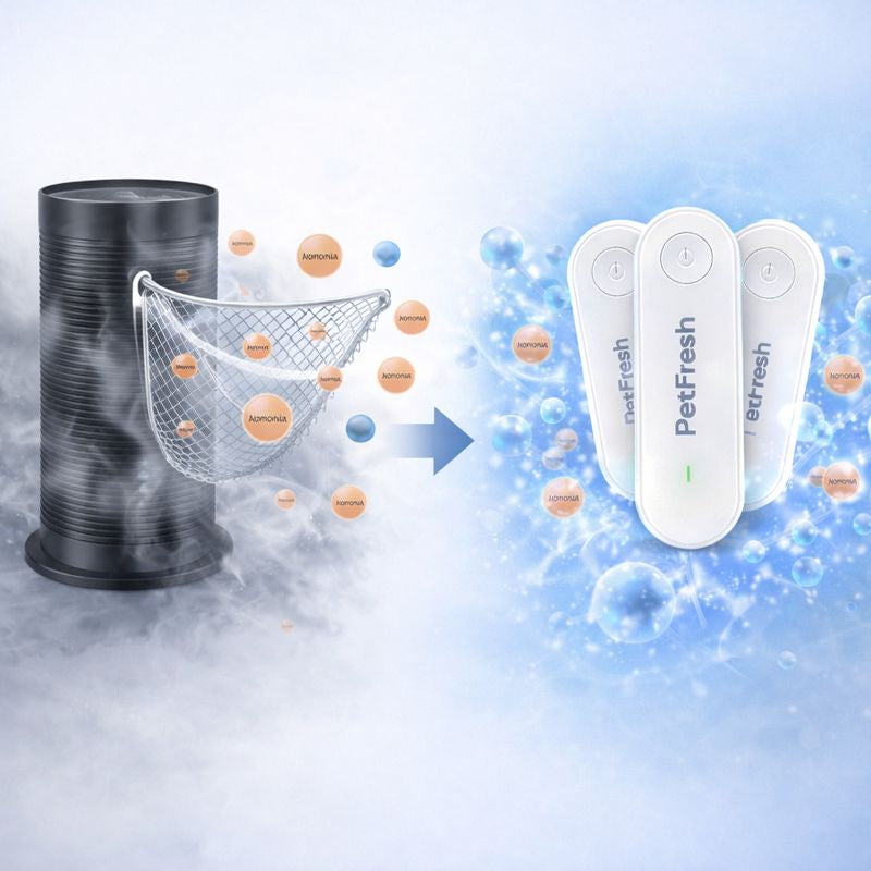Instead of trapping air like filters, it actively neutralizes ammonia and pet odors in the air.
